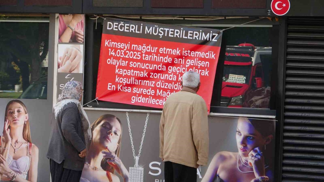 Öte yandan, merkez Akdeniz ilçesi Mahmudiye Mahallesi’nde bulunan kuyumcu dükkanına tutuklanan şüphelilerin yakınları tarafından pankart asıldığı öğrenildi. Asılan pankartta "Kimseyi mağdur etmek istemedik. 14.03.2025 tarihinde ani gelişen olaylar sonucunda geçici olarak kapatmak zorunda kaldık. Koşullarımız düzeldiği an en kısa sürede mağduriyetler giderilecektir" ifadeleri yer aldı.