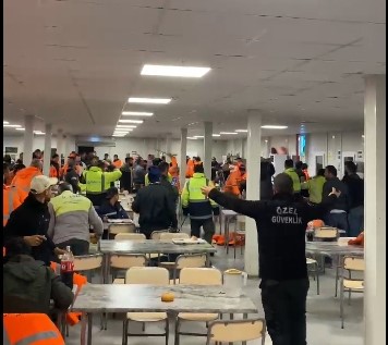 Akkuyu NGS yemekhanesinde işçiler birbirine girdi, masa ve sandalyeler havada uçuştu
