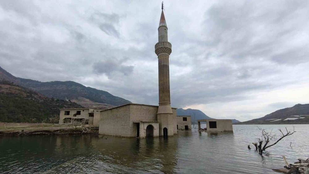 Anamur’da sular altında kalan köyden geriye bir minare kaldı
