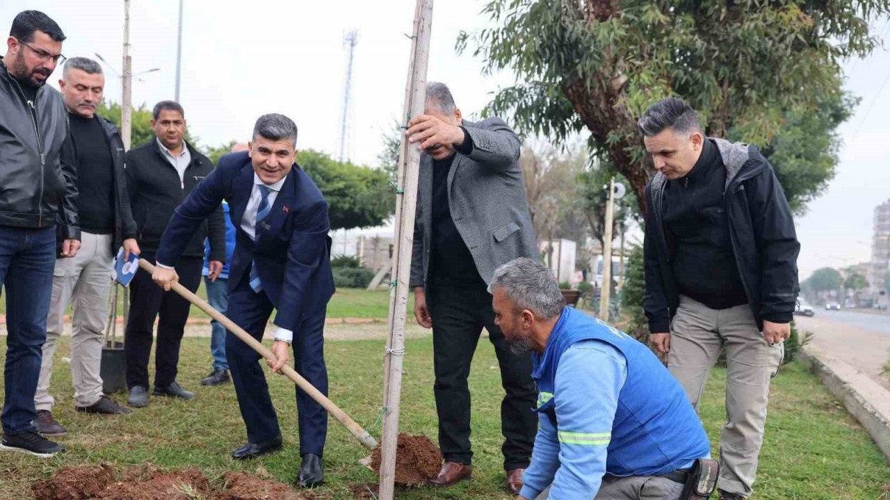 Akdeniz Belediye Başkan Vekili Zeyit Şener, incelemeleri sırasında işçilerle birlikte mevsimlik çiçek ve ağaç dikimi de yaptı.