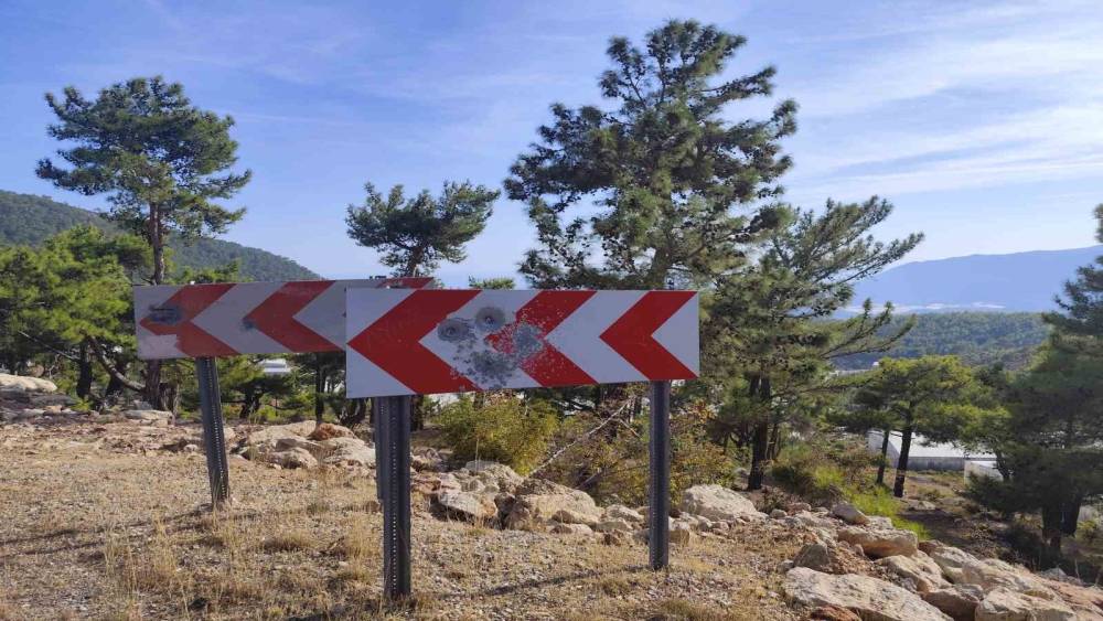 Bozyazı yayla yolunda trafik levhalarına kurşunlu saldırı