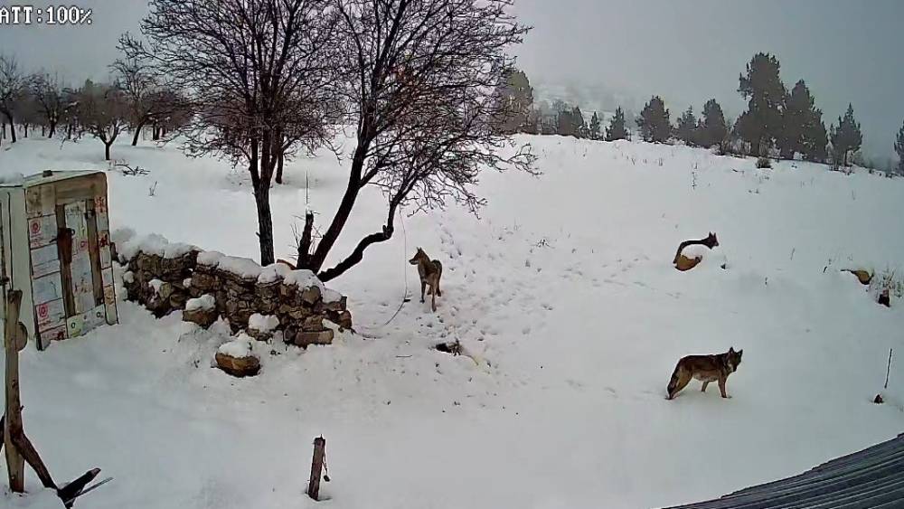 Yerleşim alanına kadar yaklaşan kurtlar, bir evin bahçesine girmeye yeltenirken yaşananlar saniye saniye kaydedildi. Görüntülerde, öncü olduğu değerlendirilen kurdun temkinli bir şekilde bahçeye yaklaştığı ancak evde şu an yaşayan olmadığından dolayı yiyecek bulamadığı görülüyor. Kurtların boş döndüğü anlar güvenlik kameralarına net bir şekilde yansıdı.