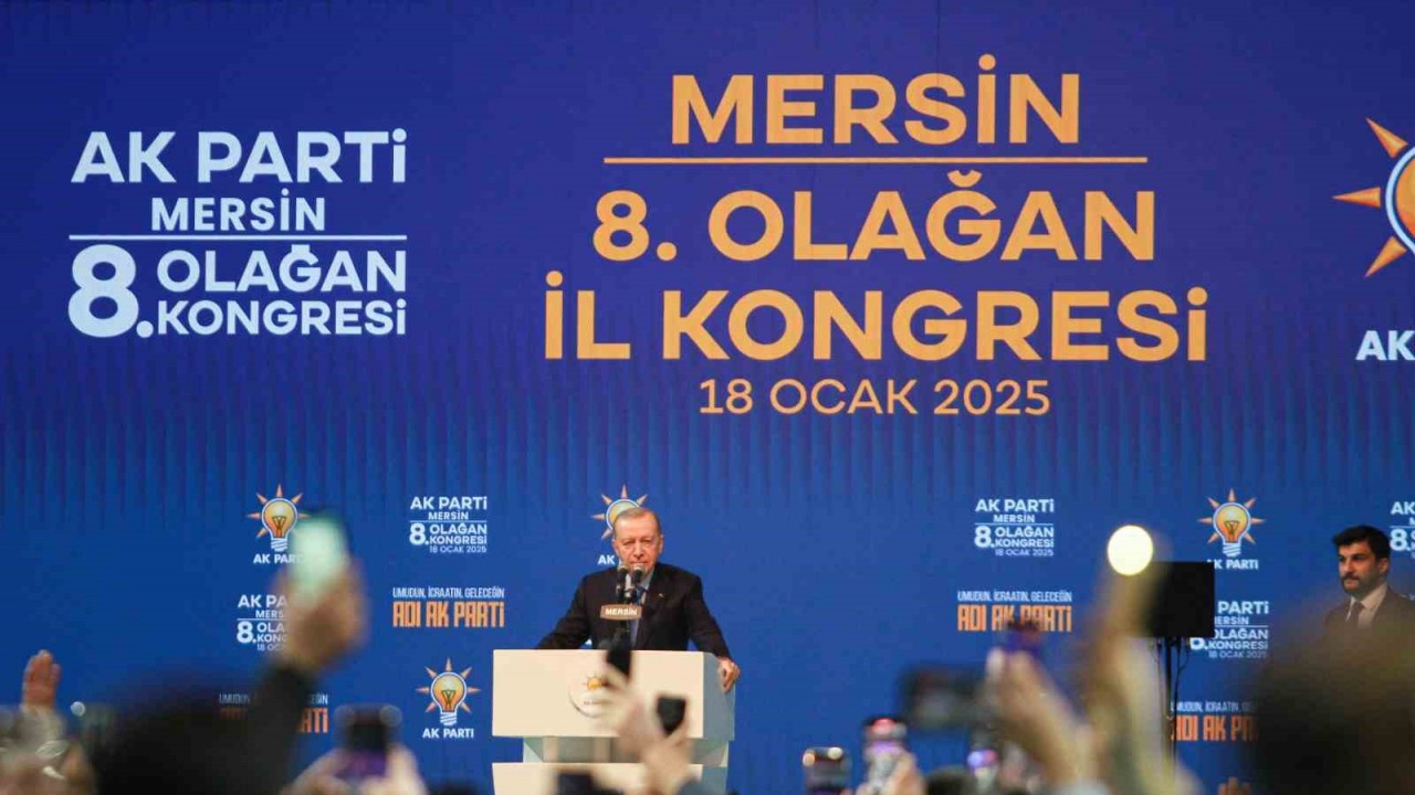 Cumhurbaşkanı Erdoğan, Mersin’de AK Parti Adana 8. Olağan İl Kongresi’ne katıldı. Servet Tazegül Spor Salonu’nda düzenlenen kongrede konuşan Cumhurbaşkanı Erdoğan, Mersinlilere teşekkür ederek, “Bu salonda AK Parti’nin eseri. Biz laf değil, eser üretiriz. Bu salonu da aynı şekilde bizler ürettik. Servet o zamanlar şampiyon olduğu için onun adını bu salona verdik. Sizlerin şahsında Mersin’in kıyısındaki, ovasındaki kardeşlerimin her birine selamlarını gönderiyorum. Kongremizin Mersin’e ve ülkemize hayırlı, uğurlu olmasını diliyorum. Mersin sadece şehirlerden bir şehir değildir. Mersin, bu ülkenin huzurunun güvencesidir. Mersin, birliğimizin, dirliğimizin sembolüdür. Toroslarda, Yörük çadırlarının üstünde tüten duman sönmedikçe milletimiz ve devletimiz istikbale güvenle bakmaya devam edecektir. Mersin, kimseyi sınıflandırmamıştır. Burası medeniyetler yatağıdır. Mersin’in bu göz alıcı tablosuna kimse halel getiremez. Bu şehir dünyaya kardeşlik hukuku dersi veriyor ve vermeye devam edecek” ifadelerini kullandı.