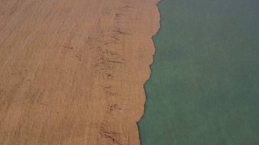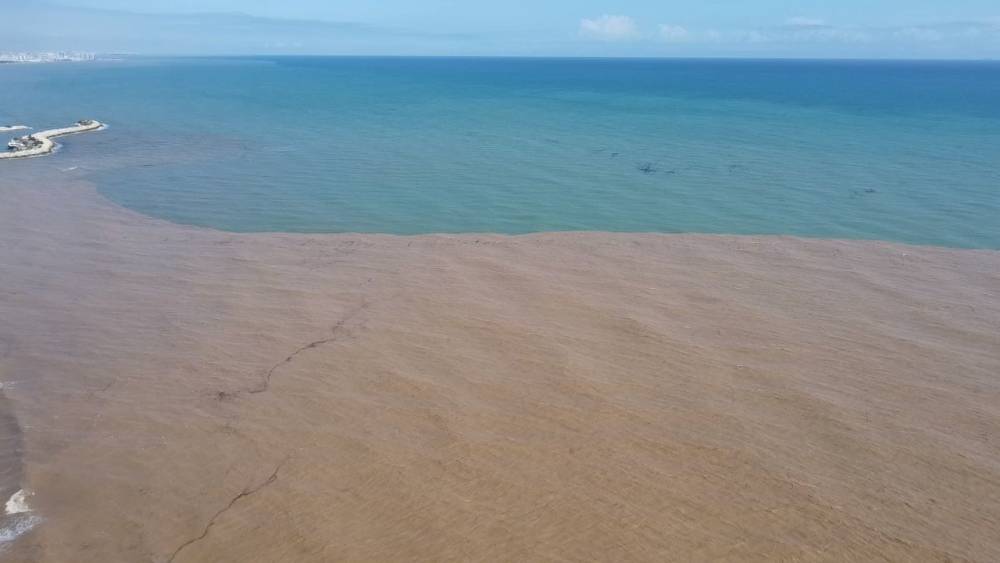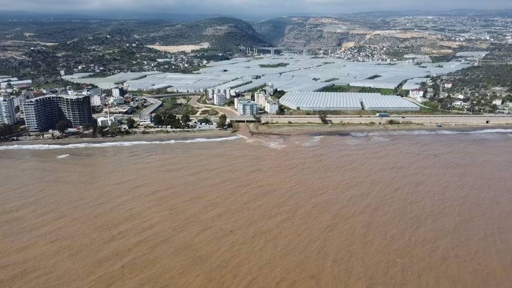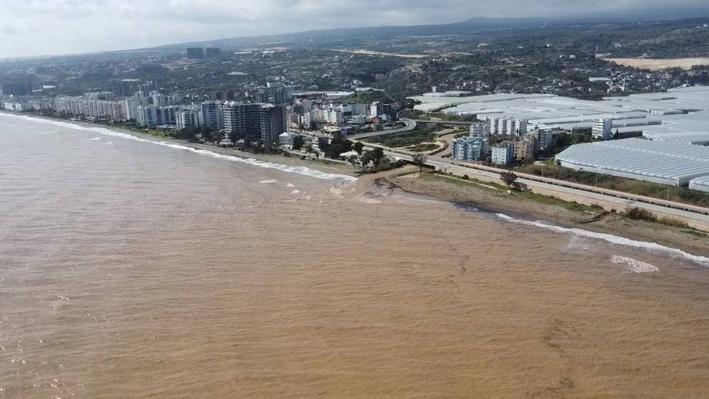 Mersin’de yağışlarla birlikte coşan dereler Akdeniz’i çamura bürürken, bölge havadan görüntülendi.