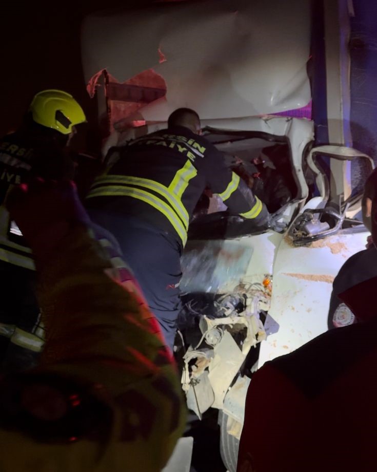 Mersin’de kamyon ile kamyonetin çarpıştığı kazada araçta sıkışan sürücüyü itfaiye ekipleri kurtardı. Kaza, Tarsus-Adana Gaziantep otoyolu Gözne gişeleri yakınında meydana geldi. Alınan bilgiye göre, M.V. idaresindeki 01 AUS 747 plakalı kargo kamyoneti, odun yüklü kamyona arkadan çarptı. Kazada sürücü M.V. araç içerisinde sıkıştı. Kazayı görenlerin haber vermesi üzerine olay yerine sağlık, itfaiye ve jandarma ekipleri sevk edildi. İtfaiye ekipleri, sıkışan sürücüyü kurtarmak için zamana karşı yarıştı. Ekiplerin uzun uğraşları sonucu sıkıştığı yerden kurtarılan sürücü, ambulansla hastaneye sevk edildi. Hastanede tedavi altına alınan sürücünün hayati tehlikesinin olduğu öğrenildi.