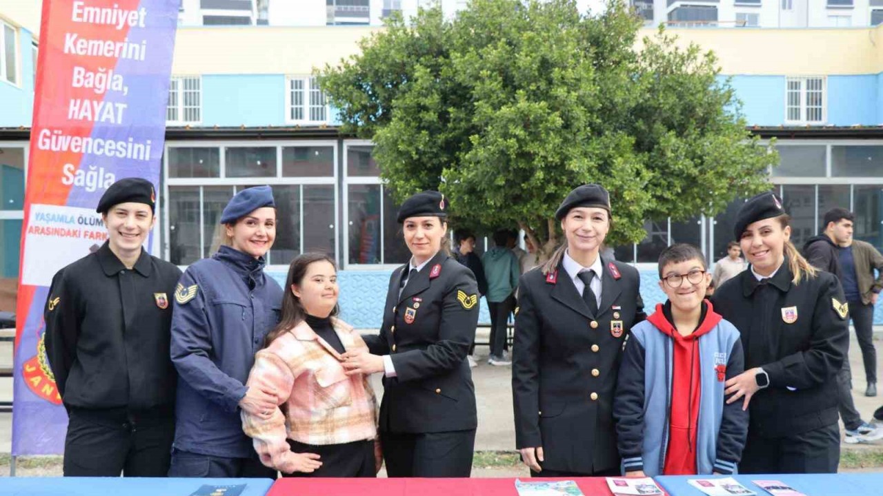 Mersin’de jandarma personeli Dünya Down Sendromlular Günü dolayısıyla özel çocukların da eğitim gördüğü liseyi ziyaret etti.