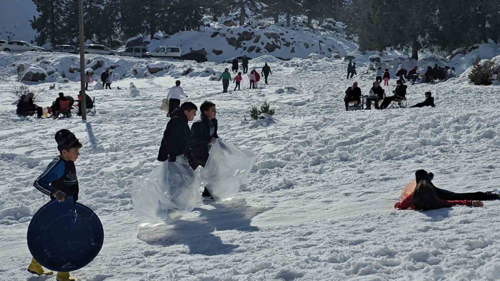 Mersin’in yüksek rakımlı bölgelerinde etkili olan kar yağışı en çok çocukları sevindirdi. Çocuklardan bazıları leğenle, bazıları da naylonlarla kayarak karın keyfini çıkardı.