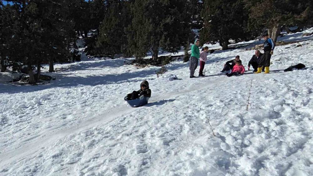 Sömestir tatilini fırsat bilerek çocuklarla Adana’dan Mersin’e geldiklerini belirten Fatma Aksu, "Kar görmeye geldik. Erdemli’nin yükseklerinde çok güzel gezilecek yerler keşfettik. Çocuklarla çok eğlendik, burası çok güzel" dedi.