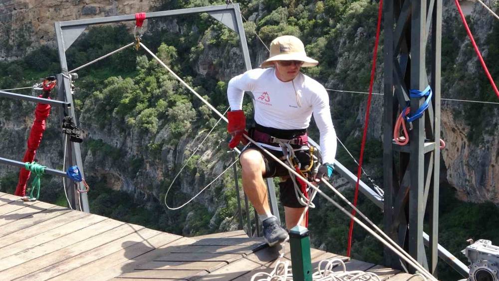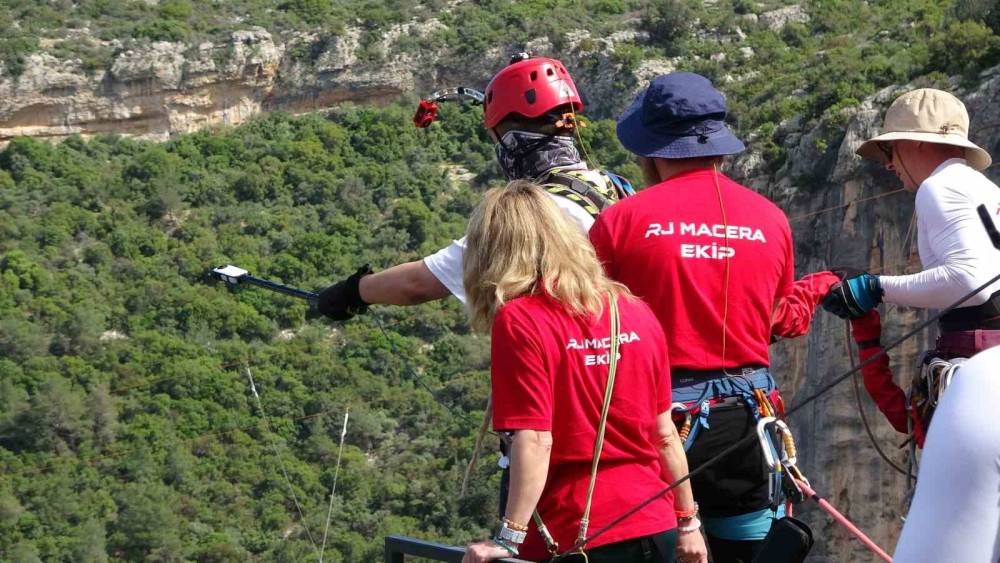Korku ve heyecan bir arada: Mersin’de 5 saniye süren 220 metreden halatla atlama çılgınlığı