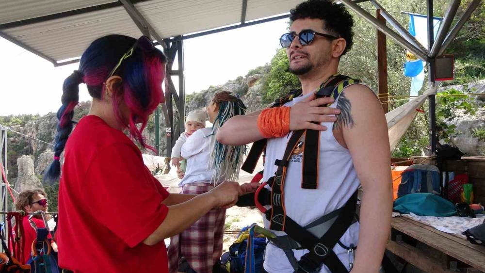 Mersin’de adrenalin sevenler, 220 metre yüksekliği bulunan vadinin üzerinden halatla atlama (Rope jumping) yaparken o anlar heyecanlandırdı. 220 metre yüksekliğindeki kayalıklardan atlayanlar hayatlarının en uzun 5 saniyesini yaşayarak korku ve heyecan dolu anlar yaşadı.Türkiye’nin önemli turizm noktalarından Mersin’in Erdemli ilçesinde bulunan Kayacı Vadisi yıllar sonra alınan gerekli izinlerin ardından adrenalin sevenleri ağırladı. Vadinin tepesine çıkan adrenalin sevenler profesyonel ekip rehberliğinde kendilerini 220 metre yükseklikten boşluğa bıraktı. Hergün bir çok kişinin katıldığı halatla atlama anları ise izleyenlerin yüreklerini ağza getirdi. İlk defa halatla atlama yapanlardan bazıları ise korkuyu da yaşadı.Heyecanı yaşamak için farklı illerden geliyorlarAnkara’dan Mersin’e atlayış için gelen Kerem Can Özcan," Sadece Mersin atlayışı için geldim, döneceğim hemen. 15 veya 16’ıncı atlayışım oluyor. Her zamanki gibi heyecan hiç bitmedi. Aynı duyguları tekrar yaşayacağım. İstediğiniz kadar atlayın hiç fark etmiyor. Aynı heyecanı tekrar tekrar yaşıyorsunuz. Ankara’da atladım, Erzurum’da atladım. Yani şu an en çok sevdiğim lokasyon da Mersin diyebilirim" diye konuştu.Kayseri’den gelen Esra Kılıç ise,"Bu ilk atlayışım olacak. Biraz heyecanlıyım ama bu heyecanı yaşamak için geliyoruz zaten.Adrenalini seviyorum açıkçası. Sürekli takip ediyordum ama işler yüzünden gelemiyordum bir türlü. Daha önce İzmir’e gittim Efes’e, uçaktan atlamak için. Orada atladık, daha sonra bu heyecanı bir kez tadınca ne yazık ki vazgeçemiyorsunuz. Şimdi buraya geldik "ifadelerini kullandı.Bir çok ilde atlayışlar yapılıyorRope jumping ekibinden Hanife Vakhtine ise," Biz burada rope jumping yani halatla atlama yapıyoruz. Halatla atlama yüksek nesnelerden, yüksek yapılardan mühendislik hesaplamaları, fizik kuralları ve rope jumping eğitimi sayesinde güvenli bir şekilde serbest düşüş yapılma sporudur. Ekibimiz aslında Rus bir ekip, Rusya’dan geldiler buraya. 2012 yılından beri rope jumping yapıyorlar zaten. 2018 yılında ilk defa Türkiye’ye gelmişler. Türkiye’deki bu güzellikleri gördükten sonra da gitmemişler ve burada bu sporu yaymaya çalışmışlar" dedi.2020 yılında Mersin’de atlayış yaptıklarını aktaran Vakhtine," Daha sonra başka illerde de yine böyle yüksek nesneler aramaya başladık. Şu an Ankara’da 70 , Mersin’de 220 , Erzurum’da 250 metreden atlıyoruz. Artvin’de yakında Deriner Barajı’nda yine 250 metreden atlayışlarımız olacak. Niğde Aladağlar’da 200 metre bir rope swing deneyimimiz oldu, bir de 150 metre yine bir kayalıktan deneyimimiz oldu" şeklinde konuştu."Mersin en dikkat çeken lokasyon"Mersin insanların çok dikkatini çektiği, çok özlediği bir yer olduğuna dikkat çeken Vakhtine," Konum olarak, lokasyon olarak böyle hem deniz kenarında olması hem yazlık bir kasabada olması çok ilgi çekiyor. İnsanlar sürekli bize Mersin’i soruyorlardı. Deniz kenarında bir yer olsun hem biz atlayışa gelelim hem tatilimizi yaparız" diye. Biz çok uğraştık, çok emek verdik buraya. Sonunda izinlerimizi aldık, güvenlik belgelerimizi aldık. Juggabs sertifikalarımız var ekip olarak hepimizin. Türkiye’de bu işi güvenli yapan tek rope jumping ekibiyiz. Sertifikalarımızı aldık, gerekli izinleri aldık ve artık 2026 itibarıyla burada güvenli atlayışlara başlamış bulunmaktayız" diyerek sözlerini tamamladı.