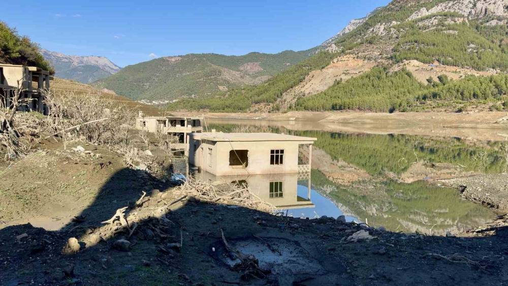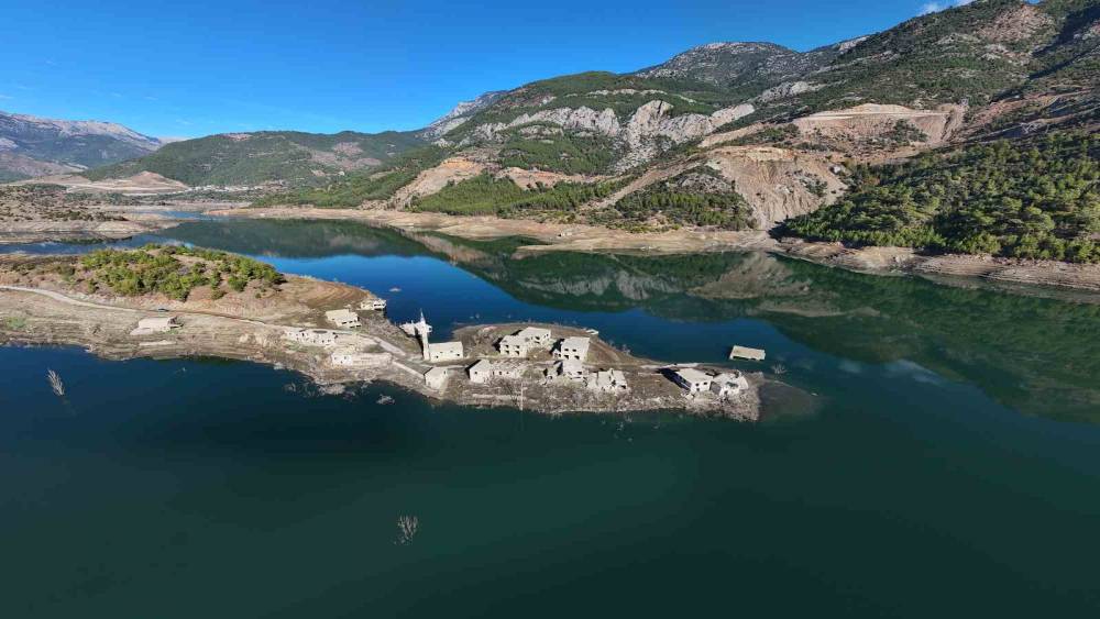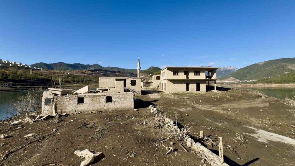 Mersin’in Anamur ilçesinde bulunan Alaköprü Barajı’nda bölgede yaşanan kuraklık nedeniyle su yaklaşık yüzde 80 oranında azaldı 11 yıl önce baraja gömülen köy evleri ve cami tamamen ortaya çıktı.