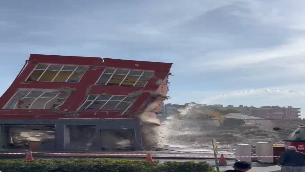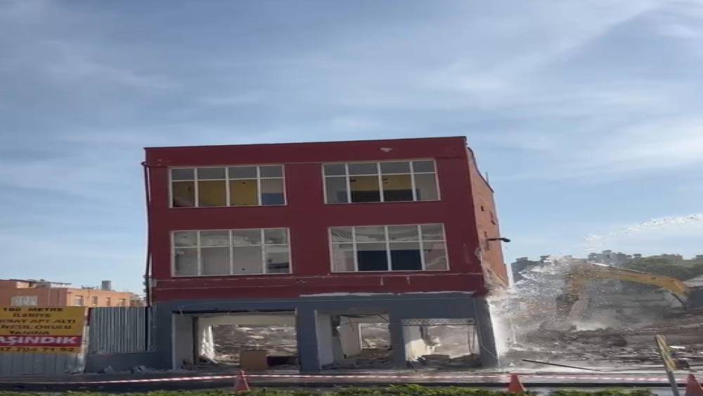 Mersin’in Tarsus ilçesinde operatör, hasar gören 2 katlı binayı kırıcıyı yere vurarak titreşimle yıktı. O anlar cep telefonu kamerasına yansıdı.Alınan bilgiye göre, Şehit Mustafa Mahallesi Cumhuriyet Caddesinde bulunan 2 katlı bina depremde ağır hasar aldı. Yerinde dönüşüme alınarak yıkım kararı verilen bina için kontrollü yıkıma başlandı. Gerekli tedbirlerin alınmasından sonra kent merkezinde bulunan binanın titretme yöntemiyle yıkılması uygun görüldü. Binayı yıkmak için gelen iş makinesi, 2 katlı yapıya dokunmadan titreşimle binayı yıktı. Titreşim ile yıkılan 2 katlı binada toz bulutları oluştu.İtfaiye ekipleri de toza karşı o sırada bölgede sulama yaptı.