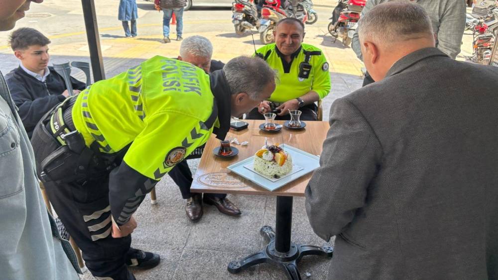 Son görevini yapan Doğan’ı Anamur İlçesi Kaymakamı Kemal Duru ise pastayla uğurladı.