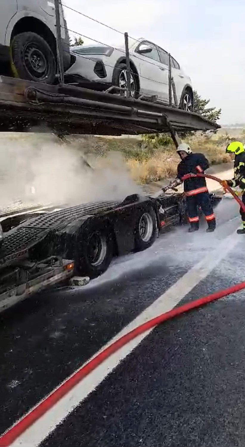 Tarsus’ta E.A.’nın sürücülüğünü yaptığı 34 B. .... çekici plakalı tırın 34 BD... plakalı olan ve üzerinde araçların bulunduğu römorkunun lastik bölümünde, Damlama bölgesi Adana istikametinde giderken dumanlar yükselmeye başladı.