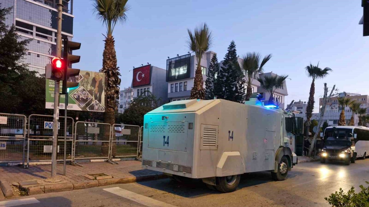 Öte yandan operasyonun ardından Akdeniz Belediye binası çevresinde TOMA araçları ve çevik kuvvet ekiplerince önlem alındı.