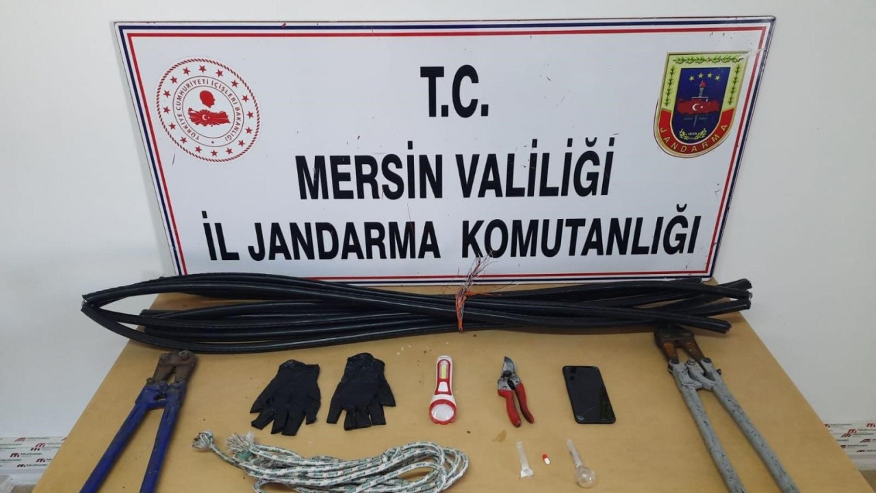 Mersin’in Silifke ilçesinde kablo hırsızlığı yaparken jandarma ekiplerine suçüstü yakalanan 2 kişi tutuklandı.