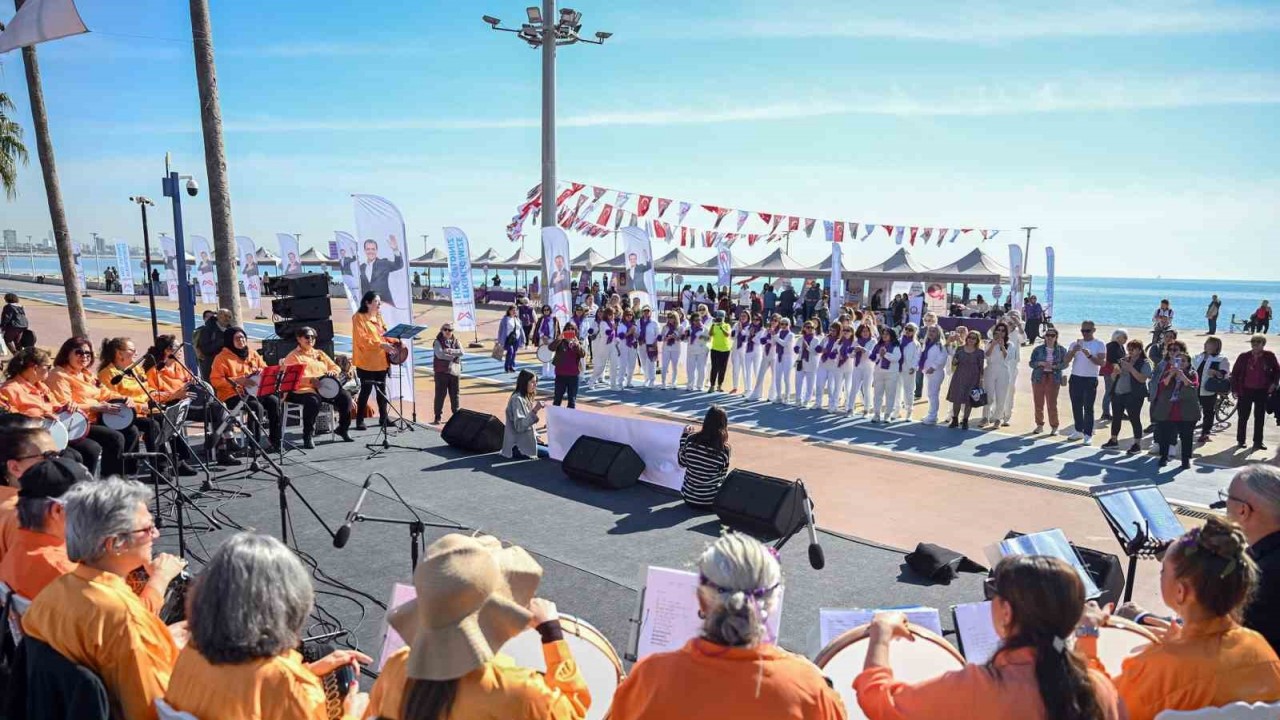 ’Kadının her işe hakkı var, her işte emeği var’ sloganıyla Galatasaray Meydanında düzenlenen etkinliklerde, Mersin Büyükşehir Belediyesi, üretici kadın stant atölyelerine konserden seminere varıncaya kadar gün boyu keyifli etkinliklere ev sahipliği yaptı. Günün erken saatlerinde başlayan programda ilk olarak, Tarsus’a Değer Katanlar (TADEKA) Kadın Ritim Grubu sahne alırken etkinlik, erbane ve darbuka çalan kadınlar tarafından oluşturulan ’Bisikletli Amatör Kadınlar Ritim Konser Grubu ile devam etti. Hep birlikte şarkılarını yüksek sesle söyleyen kadınlar, gönüllerince dans edip halaylar çekti. Yeliz Güzel ile Reng Ahenk Grubunun ardından, gündüzleri bağ bahçede akşamları ise türkü dolu dünyanın kapılarını aralayan Mut’un Çukurbağ Köyünde yaşayan kadınların oluşturduğu koro aldı. Günün ilerleyen saatleri pop ve 90’ların karışık repertuarı ile sahne alan Büyükşehir Belediyesi Kent Orkestrası ise dinleyenlere eğlenceli dakikalar yaşattı.
