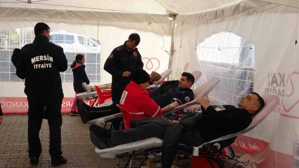 Mersin’de Kızılay’ın "Okulumda ’Kan’panya Var" projesi kapsamında kurulan kan bağışı çadırına itfaiye erleri de destek verdi. Okul bahçesinde kan bağışında bulunan itfaiyeciler, öğrenciler tarafından alkışlandı.