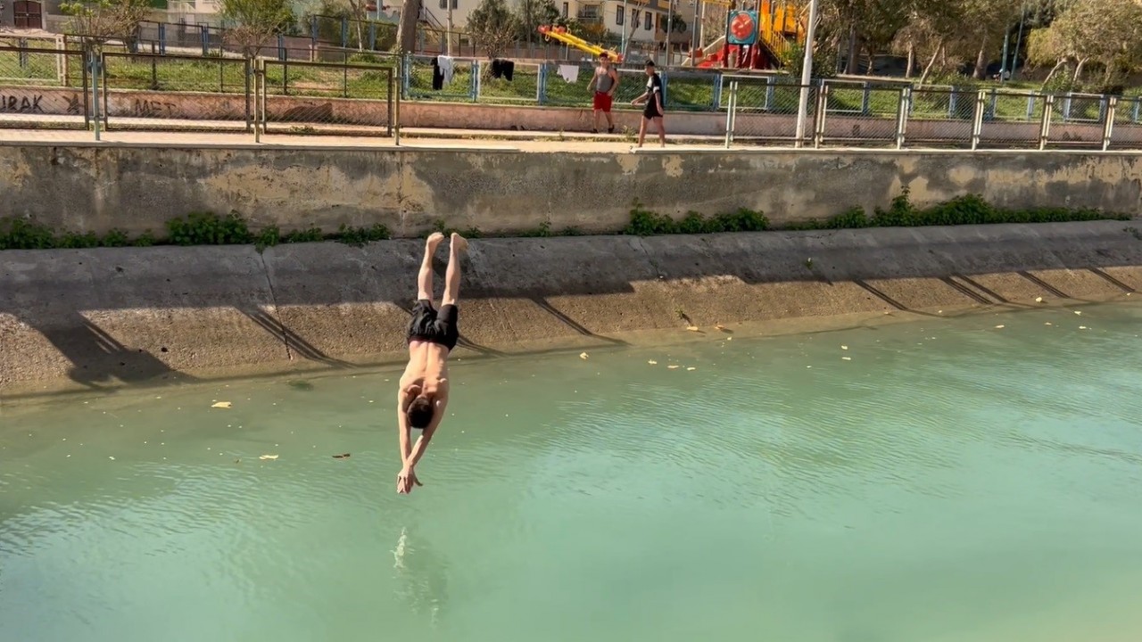 Son günlerde hava sıcaklıklarının mevsim normallerinin üzerinde seyretmesi ve nemle beraber 30 dereceyi aştığı Mersin’de çocuklar, serinlemek için sulama kanallarında tehlikeye aldırış etmeden yüzüyor. Tarsus’un içerisinden geçen kanalda, ‘kanala girmek tehlikeli ve yasaktır’ uyarısına aldırış etmeden yüzen çocuklar, bazen de suya tehlikeli dalışlar da yapıyorlar. Yaşları 12 ile 15 arasında değişen çocuklar, sıcak günleri soğuk sulama kanallarında geçiriyor. Kanalda yüzmenin tehlikeli olduğunu bildiklerini söyleyen çocuklar, yüzmenin zevkli olduğunu ifade ediyorlar. Çocukların yüzdüğü kanalların kirli olması da dikkat çekiyor.