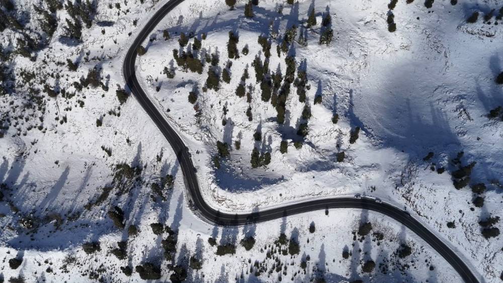 Mersin Anamur ilçesinde yüksek rakımlarda ormanlar karla kaplandı, bölge dronla havadan görüntülenirken ortaya kartpostallık görseller çıktı.