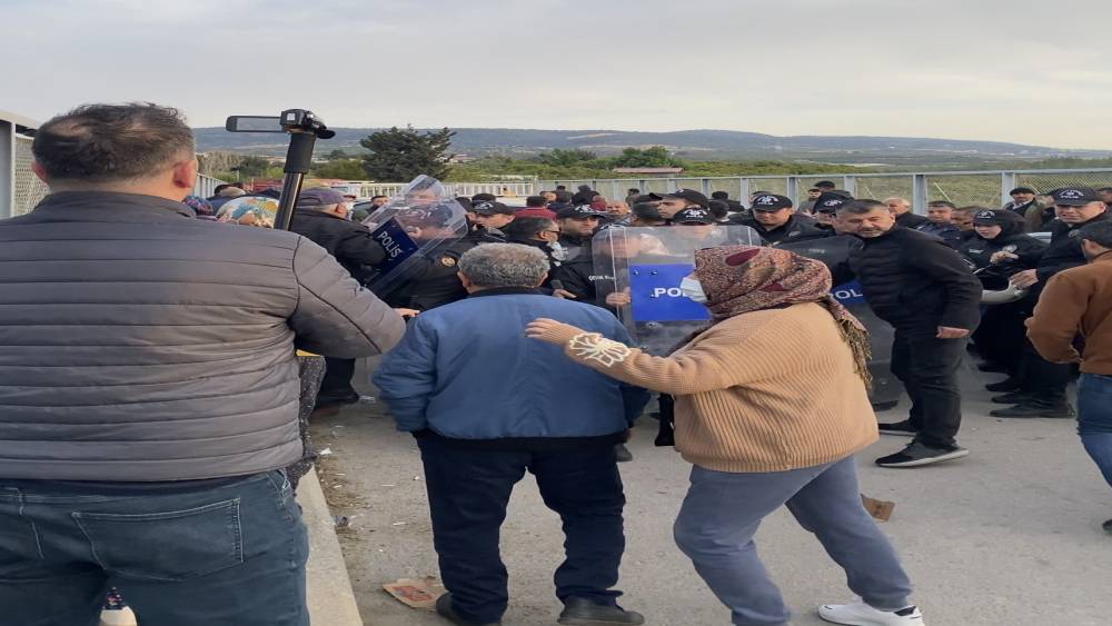 Mersin’de ormanlık alana oluşturulan narenciye bahçelerinin kaldırılması kararına tepki gösteren köylüler, iş makinelerinin önünde oturarak polis ekipleriyle karşı karşıya geldi.