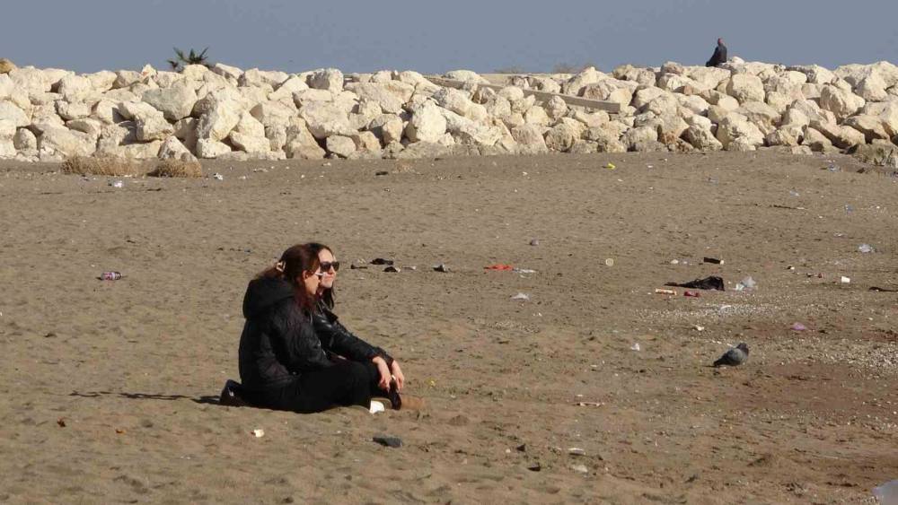 Millet Bahçesi plajında deniz kenarında vakit geçiren vatandaşlar, kimi zaman banklarda oturup sohbet etmeyi, kimi zaman ise yürüyüş yapmayı tercih etti. Kent genelinde mont yerine ince kıyafetlerle dolaşan vatandaşlar, kış mevsiminde olmalarına rağmen pastırma yazı havası yaşandığını dile getirdi.