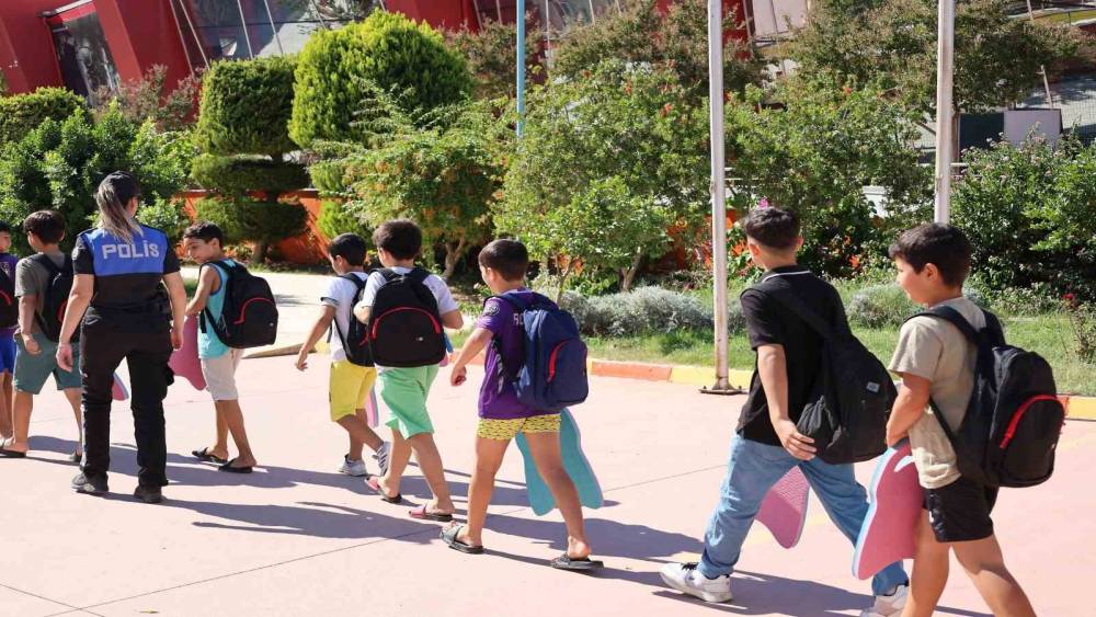 Mersin’de polis desteğiyle çocuklara yüzme eğitimi verildi