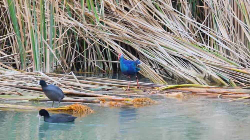 Türkiye’nin önemli sulak alanlarından Göksu Deltası’nda nesli tükenme tehlikesi altında bulunan ve koruma altındaki saz horozu görüntülendi.