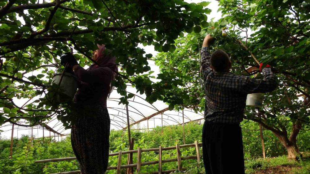 Türkiye’nin yaş sebze ve meyve üretiminde ilk sıralarda yer alan Mersin’de birçok ürün turfanda seralarda binbir emekle yetiştiriliyor. Geçtiğimiz aydan itibaren örtü altında yetiştirilip toplanan erik, karadut ve yenidünyanın ardından şimdi de kayısı hasadına geçildi. Verimin bu yıl güzel olduğu belirtilirken, kış mevsiminin sert geçmesi nedeniyle hasadın 15 gün geç yapıldığı ifade edildi. Toplanan meyveler tek tek elden geçirilerek hale gönderildi. Burada talebe göre fiyatının belirlenerek yurt içi ve yurt dışındaki müşterilere ulaştırılacağı öğrenildi.