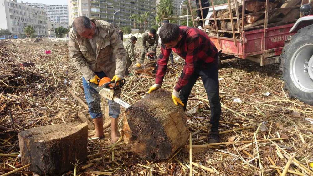 Mersin’de yaşanan sel felaketi nedeniyle 30 milyon liraya kadar satılan yazlıkların olduğu sahilleri odunlar kapladı, birçok aile onları toplamak için canlarını bile tehlikeye attı. Bazı vatandaşlar devasa odunları hızarla kesip öyle taşırken, bazıları da denize girerek büyük parçalara halat bağlayıp kıyıya çekti.