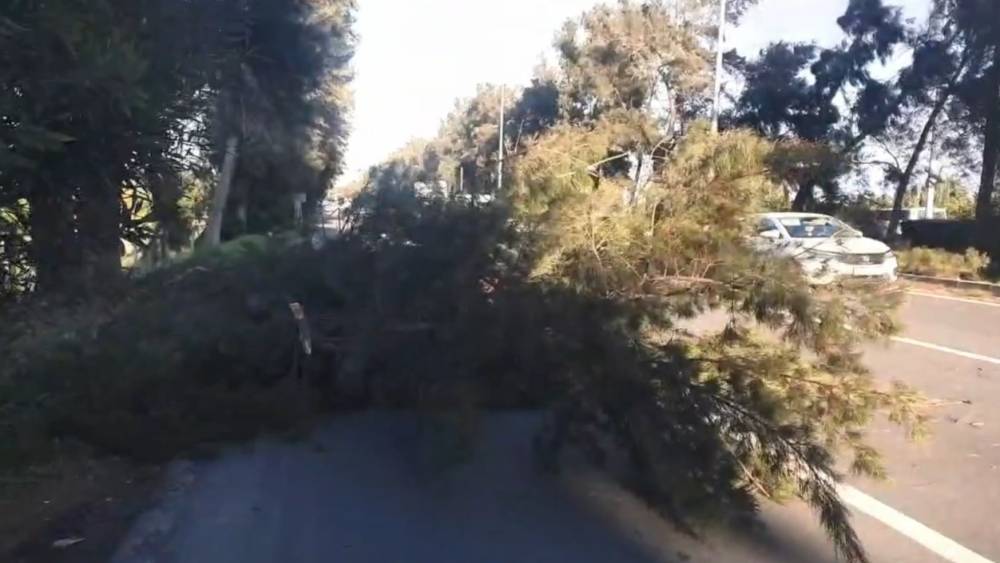 Mersin’in Erdemli ilçesinde şiddetli rüzgar nedeniyle kırılan ağaç yola devrildi, ulaşım kontrollü sağlandı.