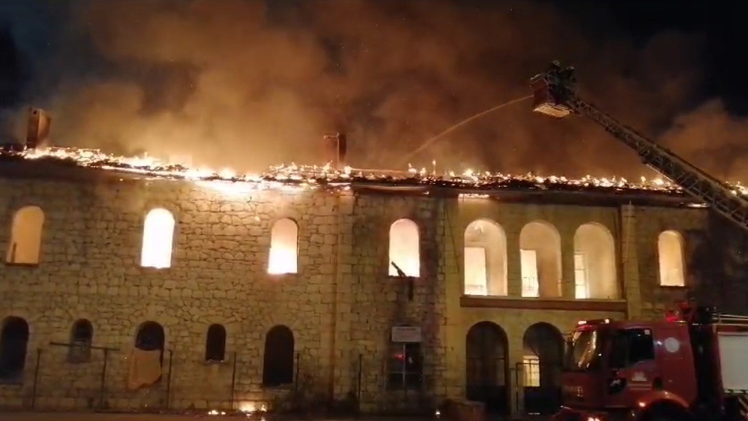 MERSİN'DE TAHLİYE EDİLEN VE TARİHİ BİNA OLDUĞU İÇİN TADİLAT GÖREN ESKİ OKUL BİNASININ ÇATI ALEV ALEV YANDI.