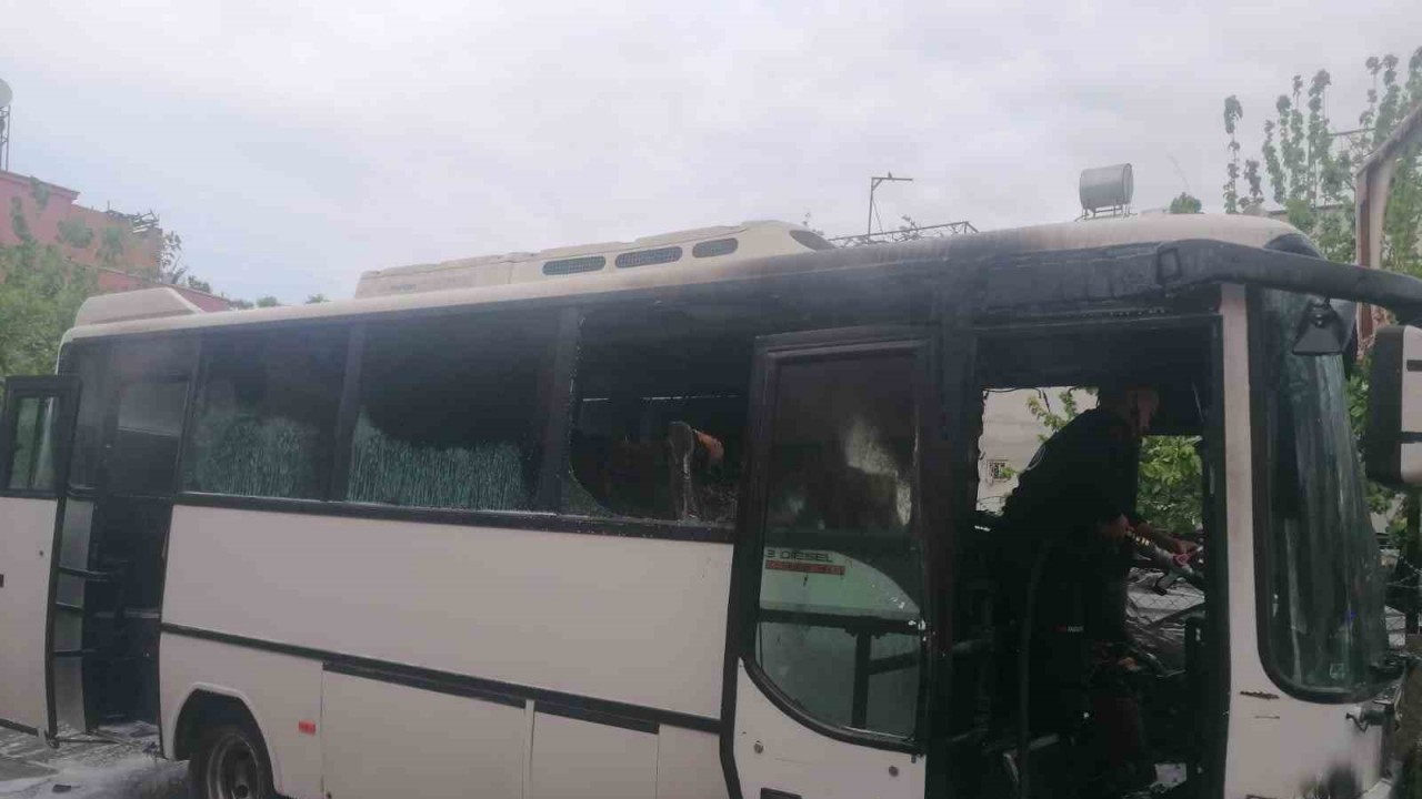 Tarsus’ta servis aracı yandı