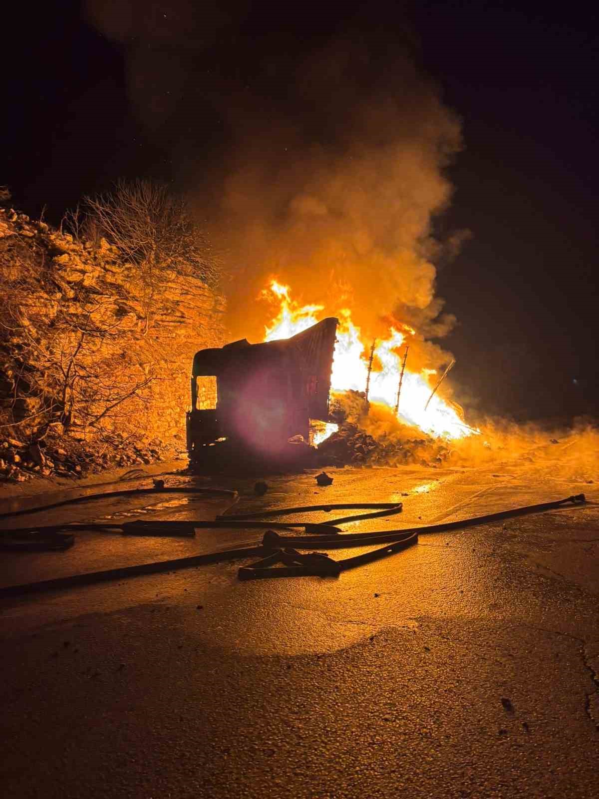 Mersin’in Tarsus ilçesinde seyir halindeyken yangın çıkan tekstil malzemesi yüklü tır kullanılamaz hale geldi.