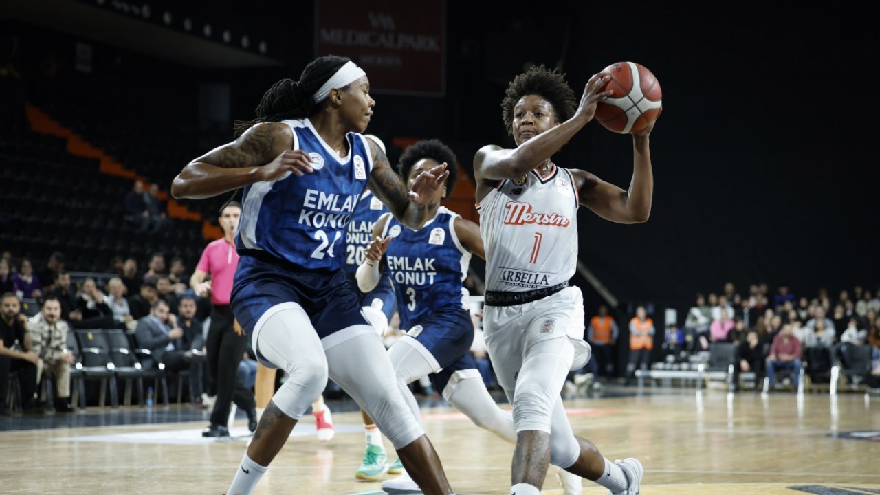 Türkiye Kadınlar Basketbol Süper Ligi’nin 14. haftasında ÇBK Mersin, sahasında Emlak Konut’u 83-82 yendi.
