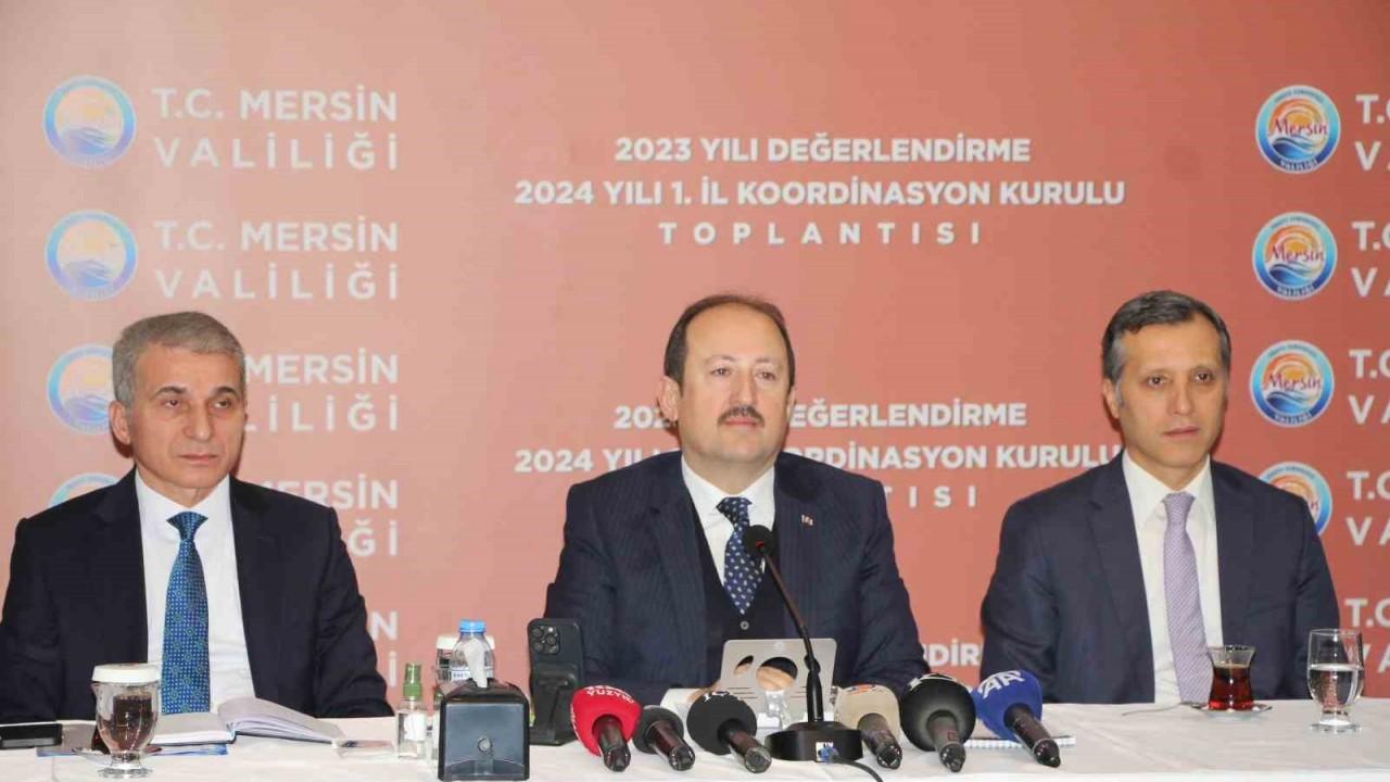2024 yılı itibariyle adım atılan ’Türkiye Yüzyılı’nın iyiliklere ve artan başarılara vesile olması temennisinde bulunan Vali Pehlivan, Mersin’de 20023 yılı içerisinde il genelinde toplam 666 proje yürütüldüğü belirterek, "Bu projelerin toplam bedeli 104 milyar 60 milyon TL’dir. Bu projeler için başlangıcından bugüne kadar 42.7 milyar TL harcama gerçekleştirildi. Sektörel dağılımına baktığımız zaman, projelerin 73’ü ulaştırma haberleşme sektöründe, 147’si tarım sektöründe, 26’sı enerji sektöründe, 114’ü eğitim sektöründe, 20’si sağlık sektöründe, 48’i turizm sektöründe, biri madencilik sektöründe, 15’i imalat ve 222’si de diğer sektörlerle olmak üzere 666 proje üzerinde ilimizde çalışmalar gerçekleştirildi. Bu projelerin içerisinde 218’i tamamlandı ve bunlar için 3.4 milyar lira harcama gerçekleştirildi. Devam eden ve bedeli 97.99 milyar lira olan 448 proje için de yine 2023 yılında 13 milyar lira harcama gerçekleştirildi. Böylelikle 2023 yılı içerisinde tamamlanan ve devam eden projeler için toplamda 16.7 milyar lira harcama yapılmış oldu" ifadelerini kullandı.