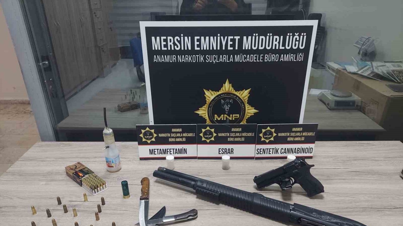 Alınan bilgiye göre, İl Emniyet Müdürlüğü Anamur Narkotik Suçlarla Mücadele Büro Amirliği ekipleri, uyuşturucu ile mücadele çerçevesinde çalışma yaptı. Anamur Cumhuriyet Başsavcılığı koordinesinde yapılan çalışmada belirlenen bir otomobildeki şüpheliler A.A. ile A.K. gözaltına alındı. Şüphelilerin otomobil ile evlerinde yapılan aramada çeşitli miktarlarda esrar, sentetik kannabinoid, metamfetamin, bong, 1’er adet tüfek ve tabanca ile çeşitli suç aletleri ele geçirildi.