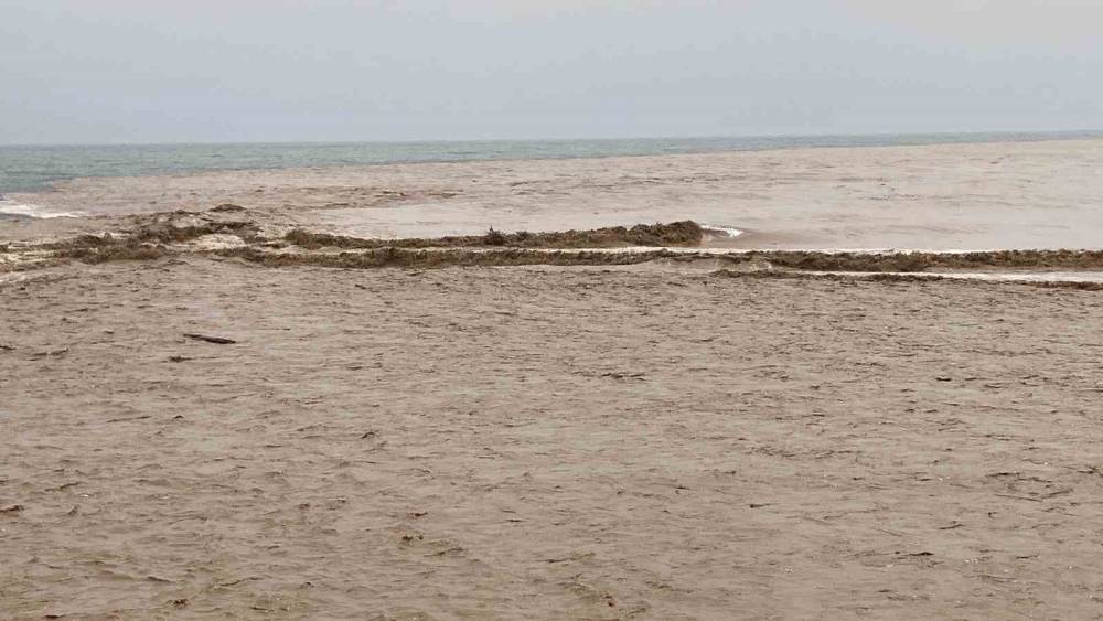 Mersin’in yaylarında etkili olan yağışlarla oluşan sel suları dereleri coşturarak Akdeniz’le buluştuğu bölgeyi de çamur rengine bürüdü. Derelerden akan sel suları ile denizin buluşması ise dron ile görüntülendi.